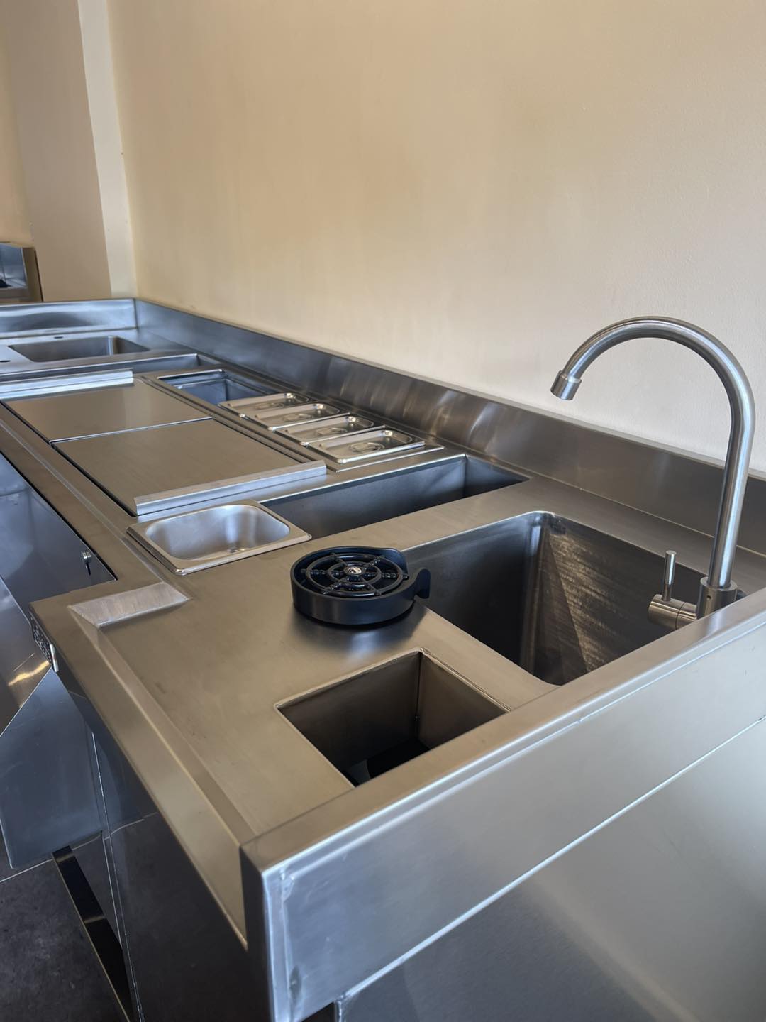 Get an all-in-one bar workstation with Icebin, Sinks, Speed Rails, GN Pan Holders, Trash Chute, Bottle Holder, and more.